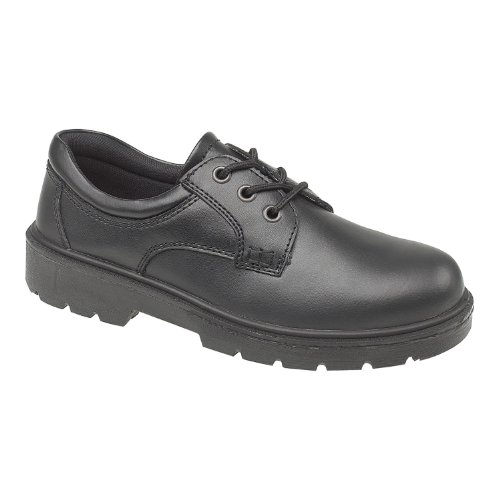 Steel toe capped safety gibson ideal for industrial office use. Crafted with a smooth mono-black leather upper. Lace up front with three eyelets. Hardwearing PU sole unit.